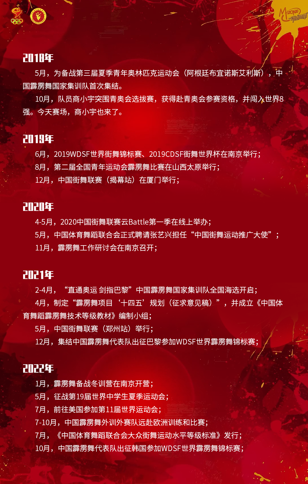 前不久欧洲外训外赛队伍中的商小宇、亓祥宇、刘清漪、曾莹莹都参加了这次选拔。此外,男子组里,2021中国街舞联赛(郑州站)男子组冠军严振彬、第十四届全运会霹雳舞项目男子亚军吴泽锋、第19届世界中学生运动会霹雳舞男子冠军于子昂、动感地带·2022中国街舞联赛(南京站)男子组亚军张洋、季军黄颖植均在名单之上;